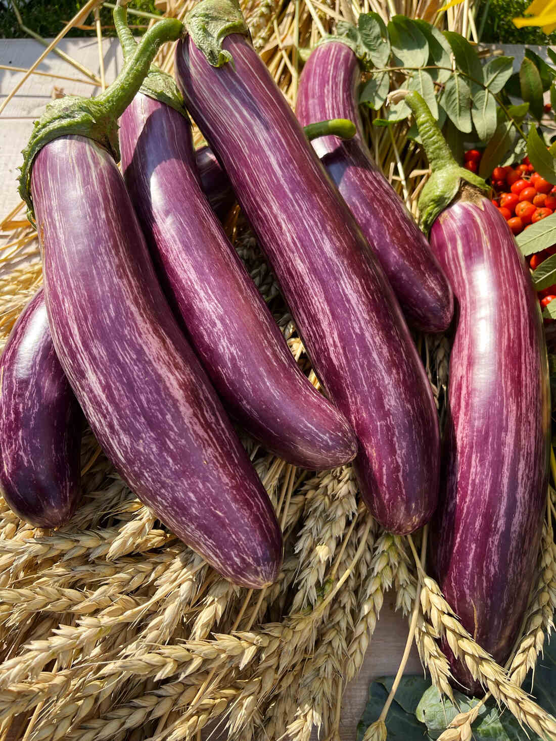 Баклажаны снимают в фазе технической зрелости, когда семена еще белые, недоразвитые и легко разрезаются ножом. Признаком технической спелости баклажана является сильный глянцевый блеск плодов. Снимать плоды нужно своевременно, так как они не дают возможности созревать следующим. Уборку урожая проводят каждые 4-5 дней, обязательно срезая, баклажан вместе с плодоножкой. Попытка сорвать плод может привести к облому всей ветки. Собранные баклажаны не дозревают (как томаты или перцы). Потому что они очень быстро вянут и теряют свои товарные качества. Поэтому их используют сразу же после уборки на переработку или приготовление блюд.