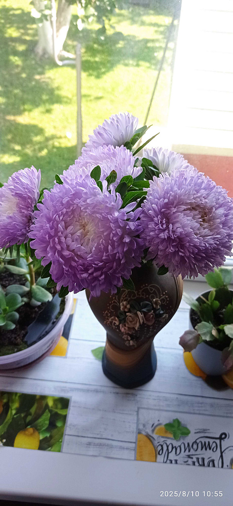 Великолепные цветы! Посеяла в начале марта, всхожесть отличная, в грунт высадила в конце мая. Зацвели в середине июля. В начале цветения нежнятина невозможная светло-сиреневого цвета, набитая, сердцевинки не видно. Далее цвет становится более насыщенный. Цветут ооочень долго, в вазе очень хороши, стоят по две недели, а если в прохладном помещении итого дольше. Куст фотографировала с разницей в три недели. Хороши в сочетании с холодным светло-желтым или салатовым цветом. У меня цвели с космеями.