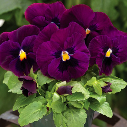 ВИОЛА РАЗМЕРА XXL! Виола серия Мамонт Очаровательные глазки, Очаровали вы меня!... Только в нашем случае не глазки, а дивные глазища! Серия с невероятно крупными цветками, диаметром до 8-10 см, которые всегда полностью раскрыты. В них действительно, как в песне, и огонь, и страсть, и нежное очарование. Они, словно тропические бабочки, трепещут на ветру своими легкими и воздушными крыльями-лепестками. И только желтые серединки роскошно поблескивают золотом на фоне красно-бордового или фиолетово-синего бархата в отражении белых облаков. Растения не высокие, но крепкие и хорошо разветвленные. Великолепное украшение вашего сада в бордюрах, рабатках, клумбах и садовых кашпо.