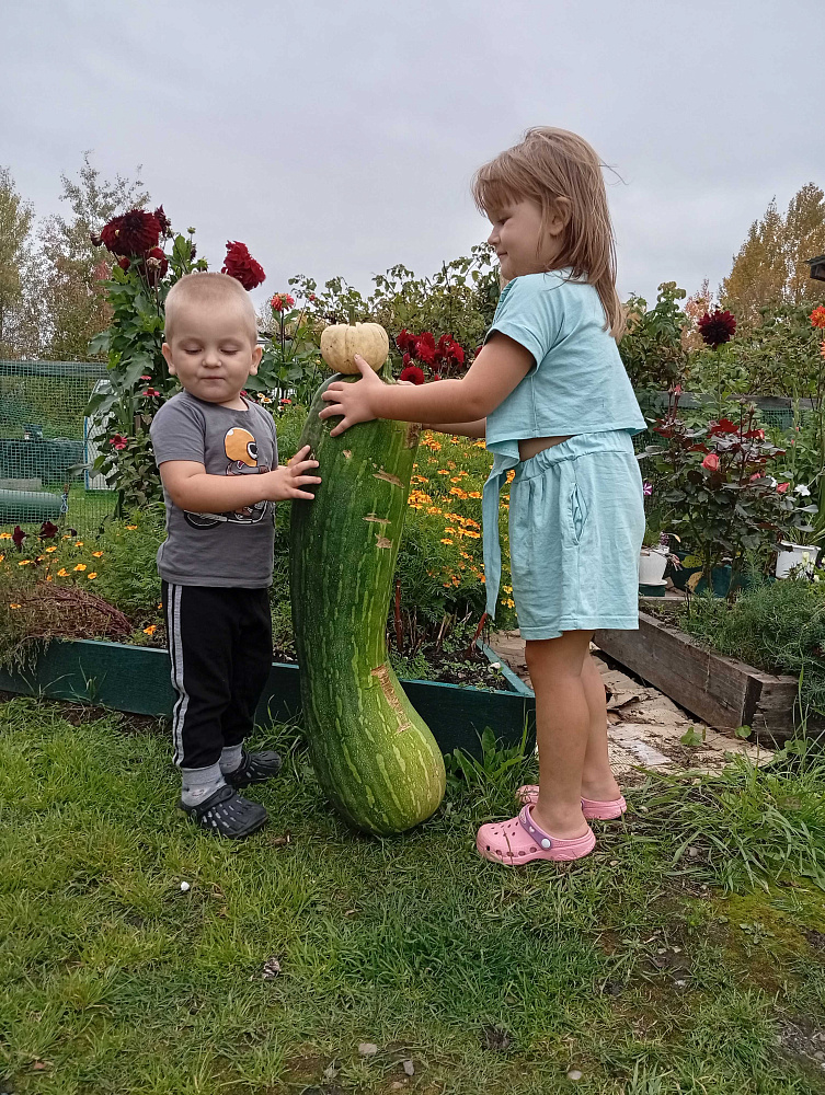 Тыква - огонь. Посеяла в конце мая наклюнувшимися семенами в грунт без укрытия, взошло 4 растения, растут быстро, плеть недлинная, но много боковых, надо прищипывать. В июле завязались тыквы, к концу сентября выросли гиганты до метра в длину, в обхвате см 50-70, еще не снимала, но тяжеленные. Любят полив, но в условиях обильных осадков или залпового полива плод может треснуть + нарастает огромное количество боковых побегов (опять же прищипываем).