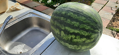 Сажаю несколько лет в теплице. Оставляю по 1-2 шт на плеть. Успевает созреть каждый год (вторая половина августа, начало сентября). Обычно от 5 до 6 кг. Арбуз очень вкусный и сладкий. А в этом году один дорос аж до 13 кг (рекорд!). На фото он 08.09.25.
