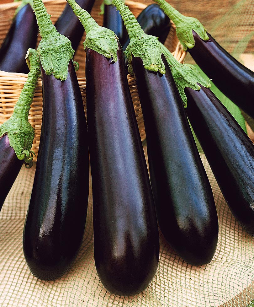 Баклажаны снимают в фазе технической зрелости, когда семена еще белые, недоразвитые и легко разрезаются ножом. Признаком технической спелости баклажана является сильный глянцевый блеск плодов. Снимать плоды нужно своевременно, так как они не дают возможности созревать следующим. Уборку урожая проводят каждые 4-5 дней, обязательно срезая, баклажан вместе с плодоножкой. Попытка сорвать плод может привести к облому всей ветки. Собранные баклажаны не дозревают (как томаты или перцы). Потому что они очень быстро вянут и теряют свои товарные качества. Поэтому их используют сразу же после уборки на переработку или приготовление блюд.