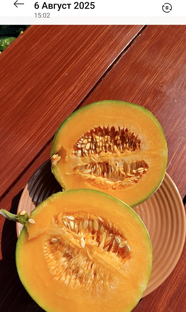Выращивала дыню в открытом грунте, рано созрела. Очень сочная и душистая,  сладкая, но не до приторности и это хорошо. Понравилась всем кто ее попробовал.  Буду заказывать      еще