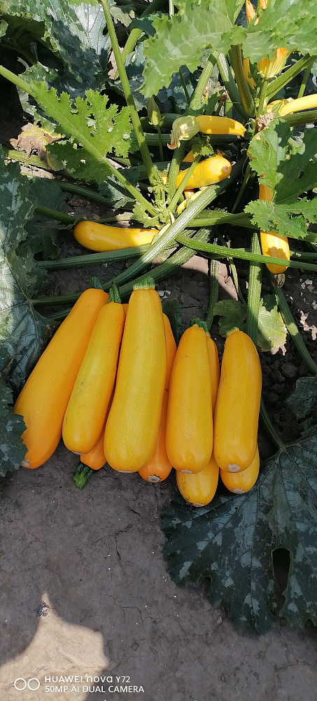 Среднеранний гибрид-сокровище с красивыми золотисто-жёлтыми удлинённо-цилиндрическими плодами, которые выгодно отличаются от светлых белоплодных собратьев высоким содержанием каротина. Растение полуоткрытое, со средней энергией роста. Высокая устойчивость к вирусам жёлтой мозаики цуккини и мозаики арбуза позволяет продлить период активного плодоношения и получать высокие урожаи. Оптимальный размер плодов для съёма 20-25 см придиаметре 4-5 см.