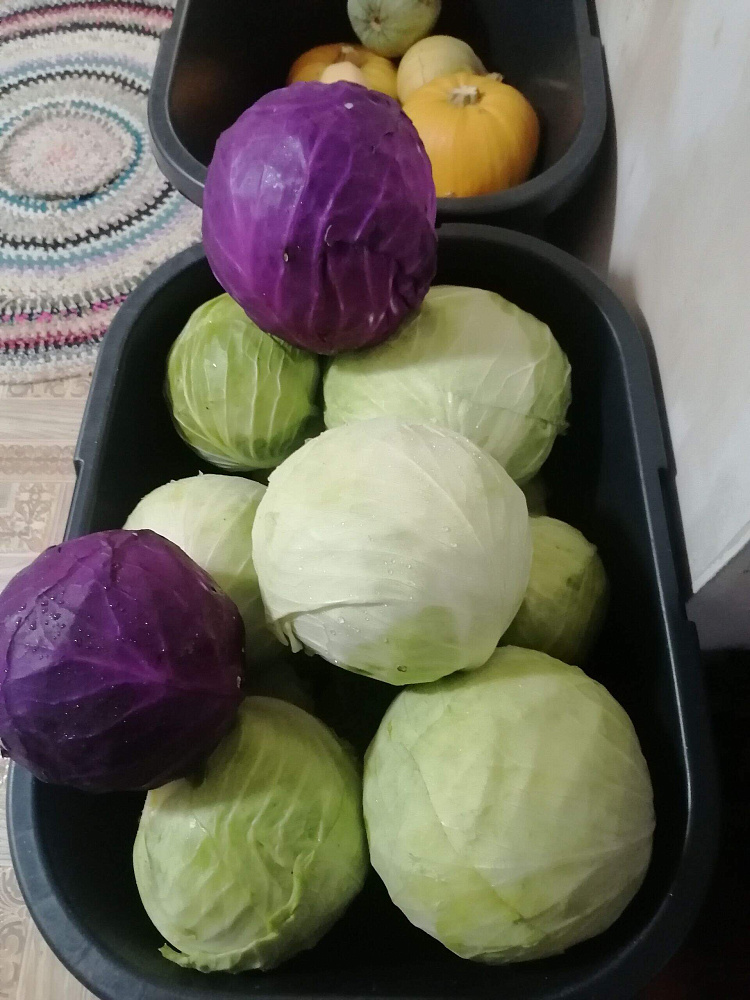 Уборку капусты обязательно нужно успеть произвести до заморозков, чтобы не уменьшился срок хранения. Идеальными для хранения качанов будут холодный подвал или погреб с температурой от 0 до плюс 2 градусов. В таких условиях позднеспелые сорта и гибриды способны храниться до 9-10 месяцев, среднеспелого срока созревания до 6-8 месяцев. Чем выше температура при хранении, тем меньше по времени она пролежит. Перед закладкой на хранение советуем каждый кочан обернуть пищевой пленкой в несколько слоев, очень плотно прижимая, чтобы не было воздуха и пустот, стараясь создать как бы вакуум, насколько это возможно. Оборачиваем только кочан, кочерыгу при этом оставляем снаружи.