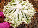 УБОРКА УРОЖАЯ и ДОРАЩИВАНИЕ ГОЛОВОК. Цветную капусту убирают, как только головки достигнут размера, соответствующего описанию к гибриду. С уборкой  запаздывать  нельзя, что бы головка не потеряла плотность и не пошла в цвет после полного формирования головки.  До формирования головок гибридная капуста, в отличие от сортовой, в цвет  не уходит, если вы не нарушили  агротехнику выращивания.  Для лучшей сохранности качества срезанной капусты, ее срезают с двумя – тремя листьями. Если вы срежете  гибридную капусту  со стеблем и положите на хранение на несколько дней в прохладное помещение, головка еще немного подрастет в размерах.