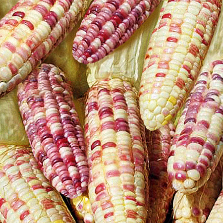 Зёрна кукурузы этого гибрида во время созревания становятся пурпурно-красными. Вот уж поистине диковинка! Этот гибрид к тому же устойчив к капризам погоды и болезням. Вкус цветного початка такой же яркий, как и цвет.