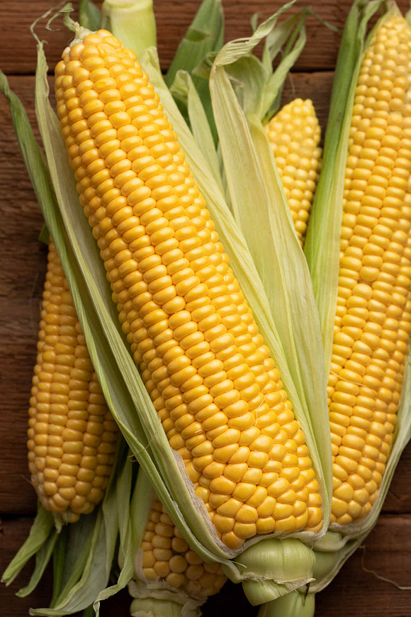 Медовый раннеспелый сорт формирует много крупных початков. Уже в стадии молочной зрелости кукуруза отличается большими круглыми зернами, плотно прилегающими друг к другу. Всего через пару месяцев можно наслаждаться их изысканным сладчайшим вкусом. Початки длиной 16–20 см.