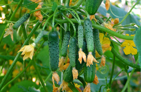 У огурца отменный аппетит, поэтому удовлетворить его потребность в питании, может только сочетание корневых и внекорневых органоминеральных подкормок. Для огурцов нужно иметь весомый запас: настой навозной жижи или травы, настой золы (100 граммов золы на ведро), кальциевая селитра, биогумус жидкий, калий (гуматы), Магбор и полные комплексные удобрения. Кормить огурцы необходимо раз в 10 дней по листу Кальцием и раз в 3-5 дней Калием. Обязательны подкормки комплексными смесями, в них есть все необходимое.