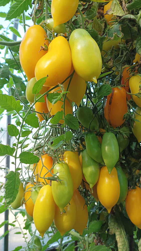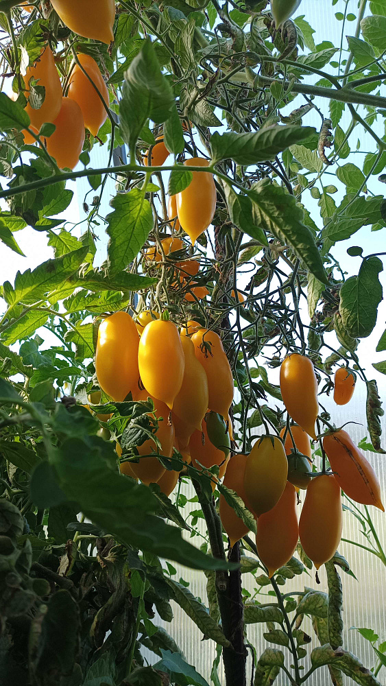 Приятно удивил этот сорт. Огромные кисти и много вкусных помидорок до 10см в длину. Верхушки срезала в конце июля, чтоб плоды успели сформироваться. Хранятся не плохо. Уже середина октября, а мы их ещё кушаем. Советую к покупке.