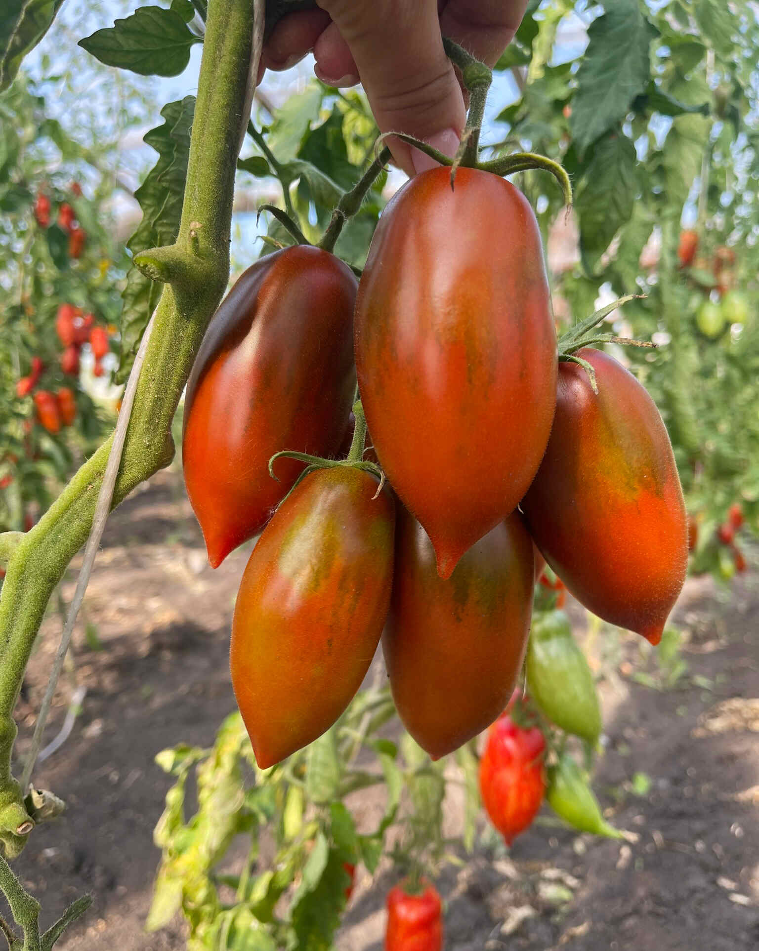 стебли зато очень крепкие. После пересадки в теплицу, быстро адаптируется и полез в потолок, обгоняя других и выкидывает кисти, и  не верится, что это те самые хиленькие кустики. фото на упаковке семян полностью соответствует действительности