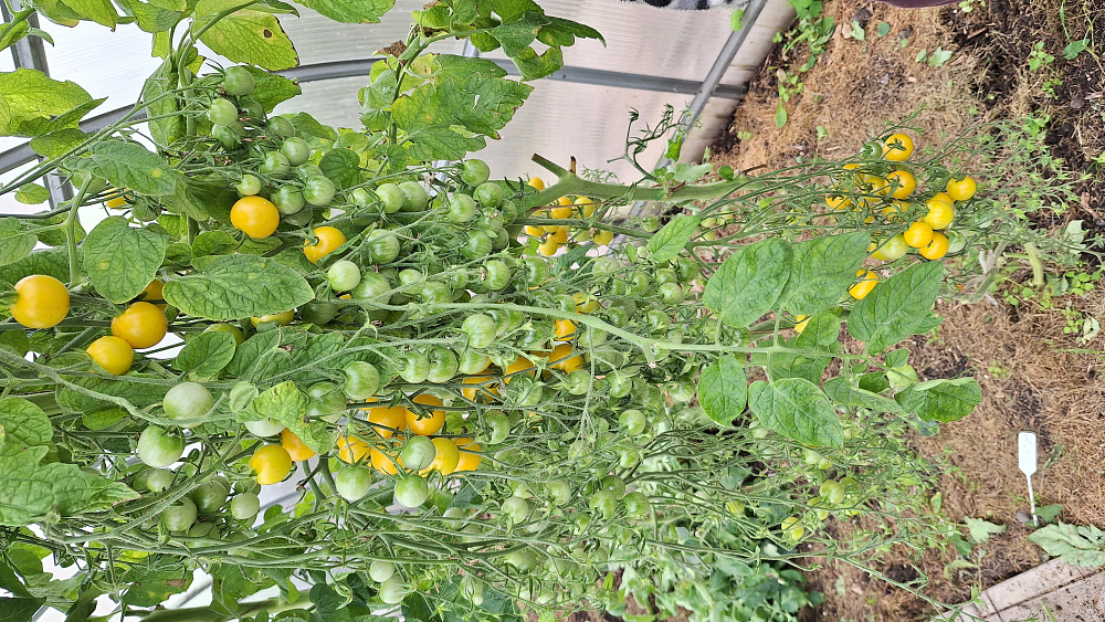 Необыкновенное зрелище представляет собой куст этих помидор. Длинные кисти с плодами янтарного цвета диаметром 2 см, на каждой кисти до 20 таких плодиков. Угостила соседку , так она описала свои ощущения, что с этими помидорами можно чай пить вместо сахара.