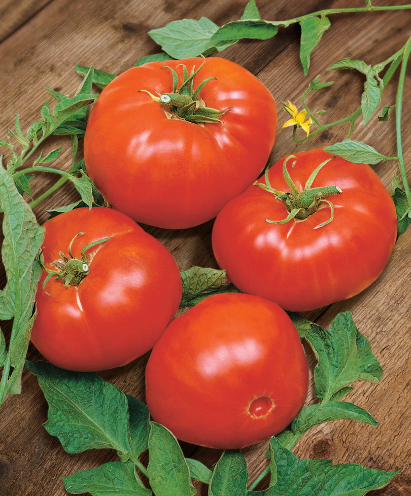 Один из самых достойных подарков селекционеров российским садоводам. Мегаурожайный сорт – до 12 кг с куста в теплице! Плоды от крупных до гигантских размеров, насыщенно-красные, с сильным ароматом и крахмалистой мякотью. Отличаются не только прекрасным вкусом, но и исключительной полезностью: содержат пектины, минералы, белки, множество витаминов и органических кислот. Куст индетерминантный, формируют в 2 стебля. Высокоустойчив к табачной мозаике, фузариозу, альтернариозу и фитофторозу.
