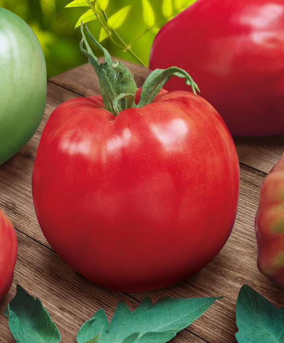 Сорт, который ценится за свои отличные вкусовые качества. Помидоры упитанные, плотные, мякоть сочная, нежная, сладкая. Плоды с легкой ребристостью, несколько вытянутые, по мере созревания приобретают насыщенно-красный оттенок. Растение индетерминантное, энергичное. Помидоры долго лежат и сохраняют товарный вид.
