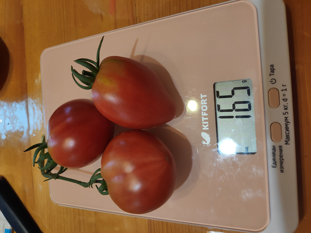 В теплице куст вырос высокий 180 см, но очень тонкие веточки, каждую пришлось подвязать, много мелких пасынков, помидоры не большие, сердцевидно формы, розовые, вкусные, с куста собрала где-то 2 - 2,5 кг