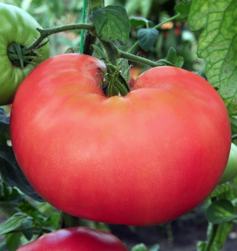 Плоды плоскоокруглые, мясистые, ярко-малиновые, весом 600-800 г. Они имеют высокую устойчивость к растрескиванию и хорошую плотность. Сорт этот прост в выращивании, но отзывчив на тщательный уход и дополнительное питание. Хорошо завязывает плоды как при высоких, так и при низких температурах. Куст высотой 80-100 см.