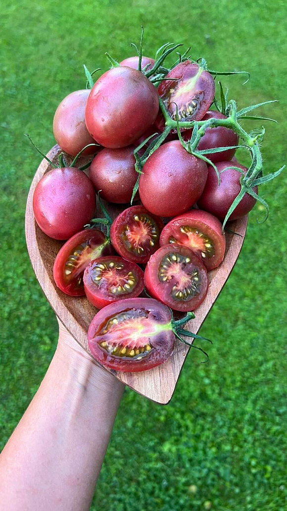 Очень вкусные помидорки, в полном созревании преобладают фруктовые нотки. Но обещанной массы в 50-70 грамм не набирали, максимум 35-40 гр. Но это не уменьшает их привлекательность. Обязательно буду выращивать их и в 2026 году.