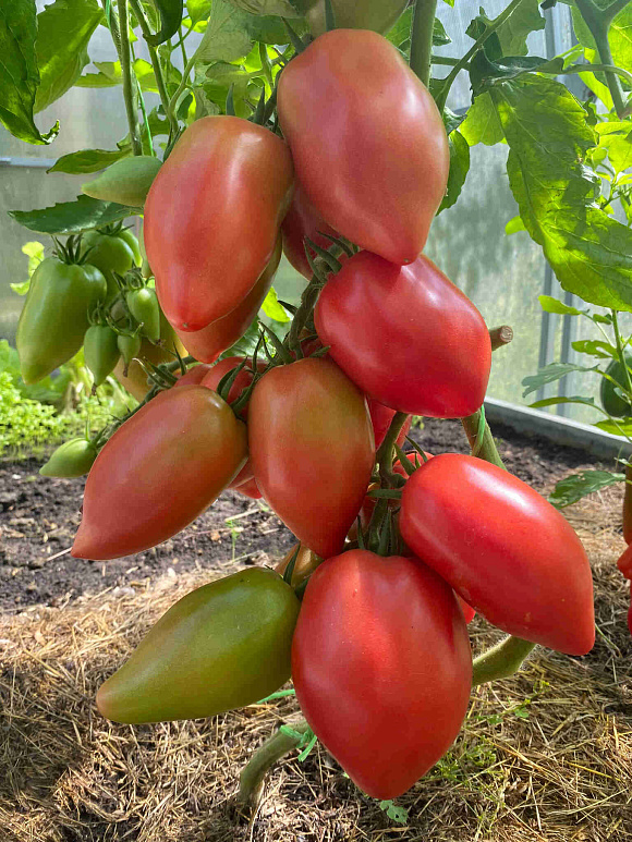 Очень впечатлена этими томатами. Росли в теплице. Урожайность очень высокая, все кусты увешаны помидорами. Вкус очень понравился, не кислый. Плодоносили до октября. Вершинкой, в отличии от других томатов, не болели.