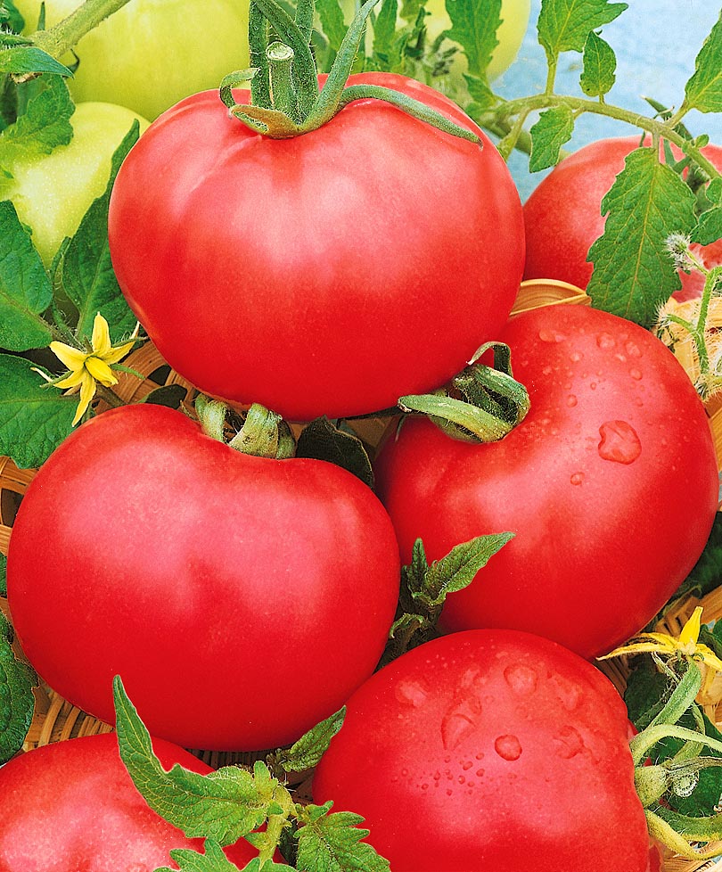 Один из особенно вкусных розовоплодных гибридов нового поколения. Очень короткие междоузлия, ранняя закладка первой кисти и исключительно высокая урожайность. На каждой кисти сразу по 5-6 штук очаровательных, равномерно розовых мясистых округлых плодов. Быстро растут и набирают вес, хорошо хранятся и транспортируются. Мякоть очень сладкая и нежная. Растения высокие и мощные, нуждаются в подвязке. Гибрид индетерминантный, высоко устойчивый к большинству болезней.