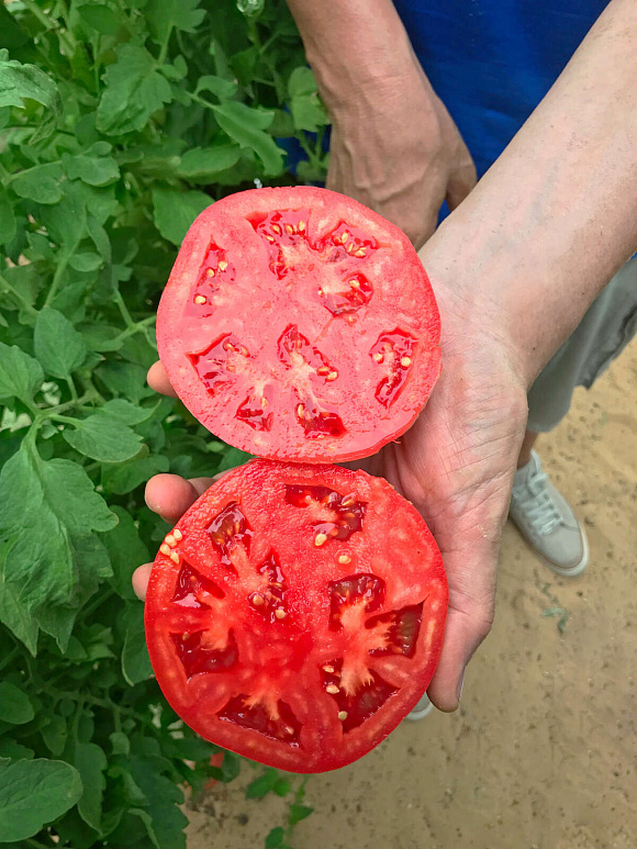 Гибрид не растрескивался, не болел, оказался очень урожайным, к тому же помидоры  имели отличные вкусовые качества. Даже в короткое удмуртское лето помидоры успели вызреть прямо на кусте. Томат просто замечательный, один из лучших и любимых в моей коллекции. И я уже посадил на рассаду несколько семян и уверен, что "Тверия F1" не подведёт меня с урожаем, несмотря на любые капризы природы.