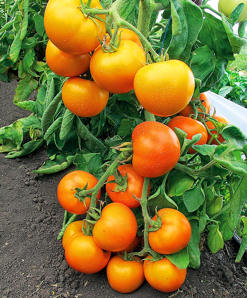 Сокровище коллекции уральских томатов! Гибрид примечателен красивейшими плодами, гладкими, округлыми, насыщенно-оранжевыми снаружи и внутри, светящимися червонным золотом, с ярким насыщенным вкусом. Содержание бета-каротина в 5-7 раз больше, чем в красноплодных томатах. Не аллергенный. Созревание раннее, отдача урожая дружная. Растение детерминантное, со сложными нерыхлыми кистями. Отлично завязывает плоды, даже при неблагоприятных условиях выращивания обеспечит гарантированный урожай. В открытом грунте можно не пасынковать.