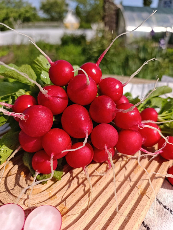 Редис – не просто ранний хрустящий деликатес. В ярких сочных корнеплодах содержится полный набор витаминов, горчичное масло, обладающее противомикробным действием, биологически активные антоцианы, известные своими антиоксидантными свойствами, укрепляющими ослабленный иммунитет.