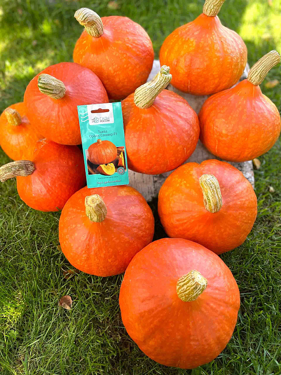 Очень ранний гибрид японской тыквы Ишики кари, которая славится своими вкусовыми качествами и восхитительным ароматом. За время от всходов до уборки порционные-тыковки успевают впитать всю прелесть летней неги и благодати. На плетях длиной около 1 м растение образует до 4 плодов. Они очень выровненные, насыщенно-оранжевые, с такой же яркой мякотью, упругой и сладкой. Транспортабельность хорошая. Плоды сохраняют товарные качества в течение 140 дней после съема.