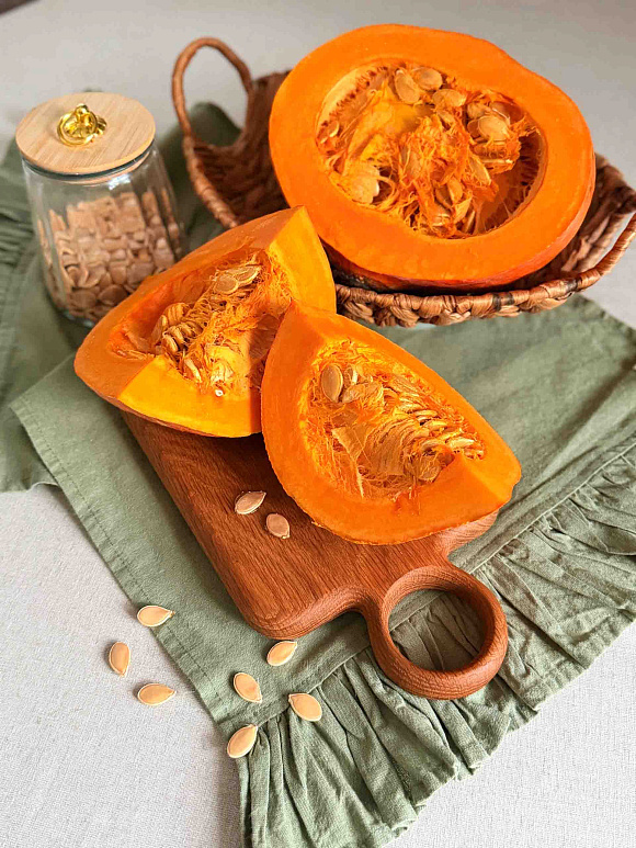 Очень сладкая, ароматная тыква. Из неё получается вкусный, насыщенный оранжевый суп-пюре, ароматный тыквенный пирог, вкуснейшая запечённая тыква с мёдом и корицей.