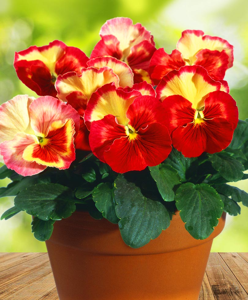 Виола, или анютины глазки, или фиалка трёхцветная. Современные сорта и гибриды низкорослы, компактны, с крупными (до 10 см) цветками. Виолу хорошо посадить на клумбу с первоцветами. Отцветают крокусы и мускари, – распускаются анютины глазки. Летом они несколько теряют декоративность, а с наступлением прохлады пышно цветут снова и снова. Эти цветы хороши и на клумбах, и в вазонах, и на балконе.