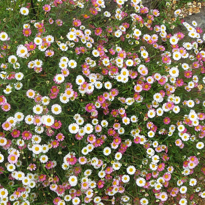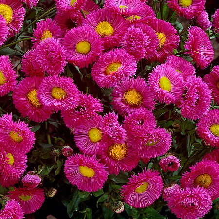 Красив на загляденье, идеальная копия многолетней астры. Соцветия-корзинки открытые, с нежно-сиреневыми трёхрядными краевыми лепестками и жёлтым центром. Цветёт с конца июня до начала августа и повторно в сентябре.