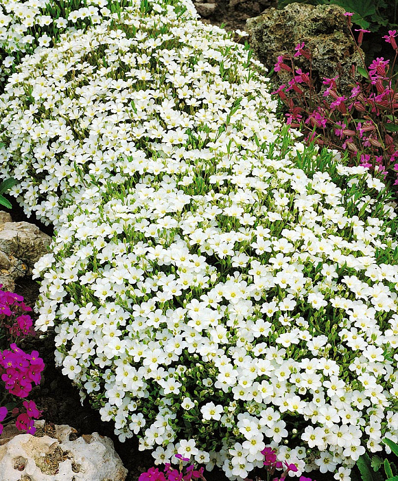 Маленькая искусная кружевница укроет каменистые участки сада плотным узором изящных белоснежных цветков 2-3 см в диаметре, образуя плотную подушку из кожистых узких листьев. Радует обильным цветением весной и в начале лета.
