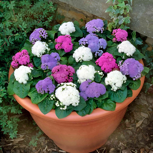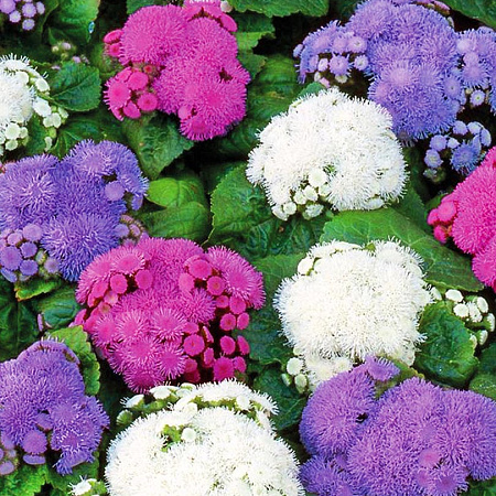 Агератум – цветок из семейства астровых, но в отличии от астры он не холодостоек, а теплолюбив. Цветет он необычайно обильно и длительно, так же как и астры, но только до первых заморозков. Гибридный агератум отличается ранним, обильным и продолжительным цветением, выровненностью по высоте и расцветке, по сравнению с сортами. Растут гибриды агератума очень быстро, они необыкновенно устойчивы к болезням и вредителям, на ваших глазах превращаются в компактные кустики одинаковой высоты и интенсивной яркой окраски. Использовать агератум можно как для оформления цветников, бордюров, балконных ящиков, так и для самостоятельных посадок. Агротехника его выращивания незначительно отличается от выращивания астр и точно так же как и у астр, очень проста. Стратификации холодом семена агератума не подвергают. Перед посевом выдерживают их не менее 2 х – 4 х недель при комнатной температуре + 23°С - + 25°С.