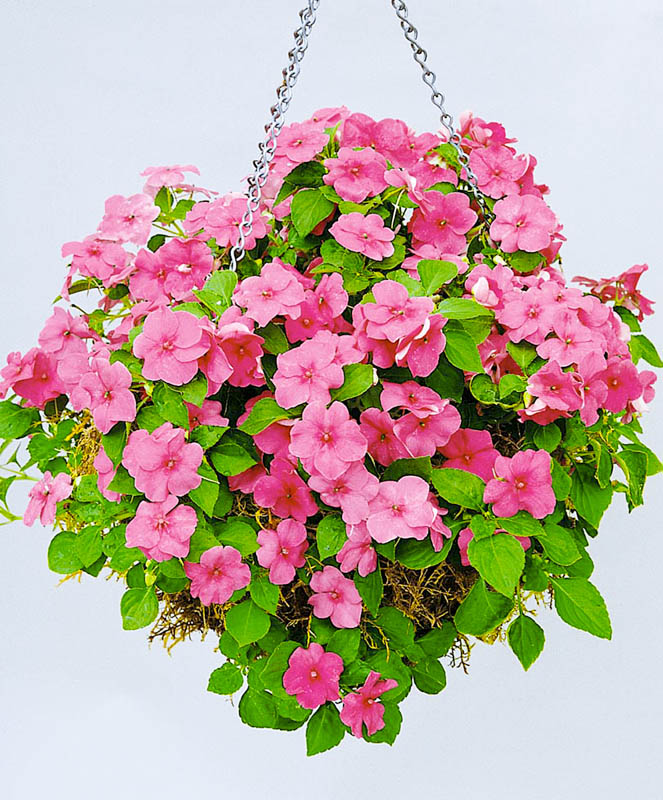 Блистательная новая серия ампельного крупноцветкового бальзамина. Растение сильноветвящееся, в диаметре разрастается до 35-40 см. Цветение обильное и продолжительное, цветки открытые крупные диаметром 5 см. Высота растения до 20-30 см.