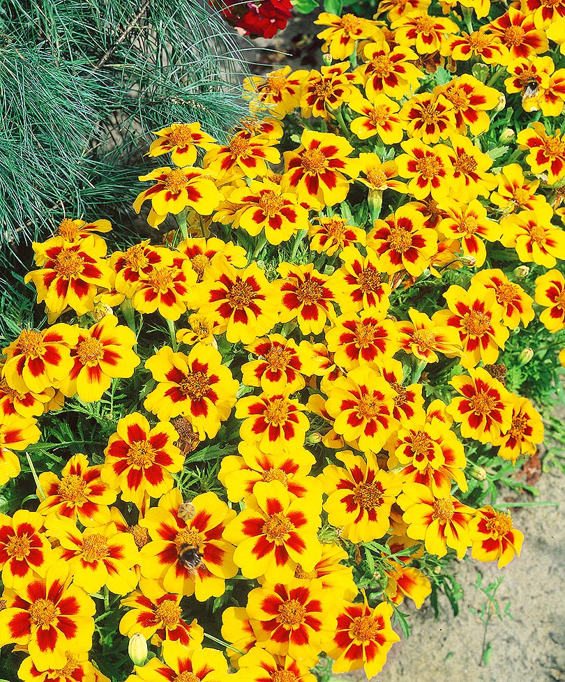 Высаживают рассаду в грунт, как только минует угроза заморозков. Бархатцы замечательно кустятся в ширину, поэтому не высаживайте их близко друг к другу. Для бархатцев подойдет любая почва, даже та, где другие цветы не желают расти.