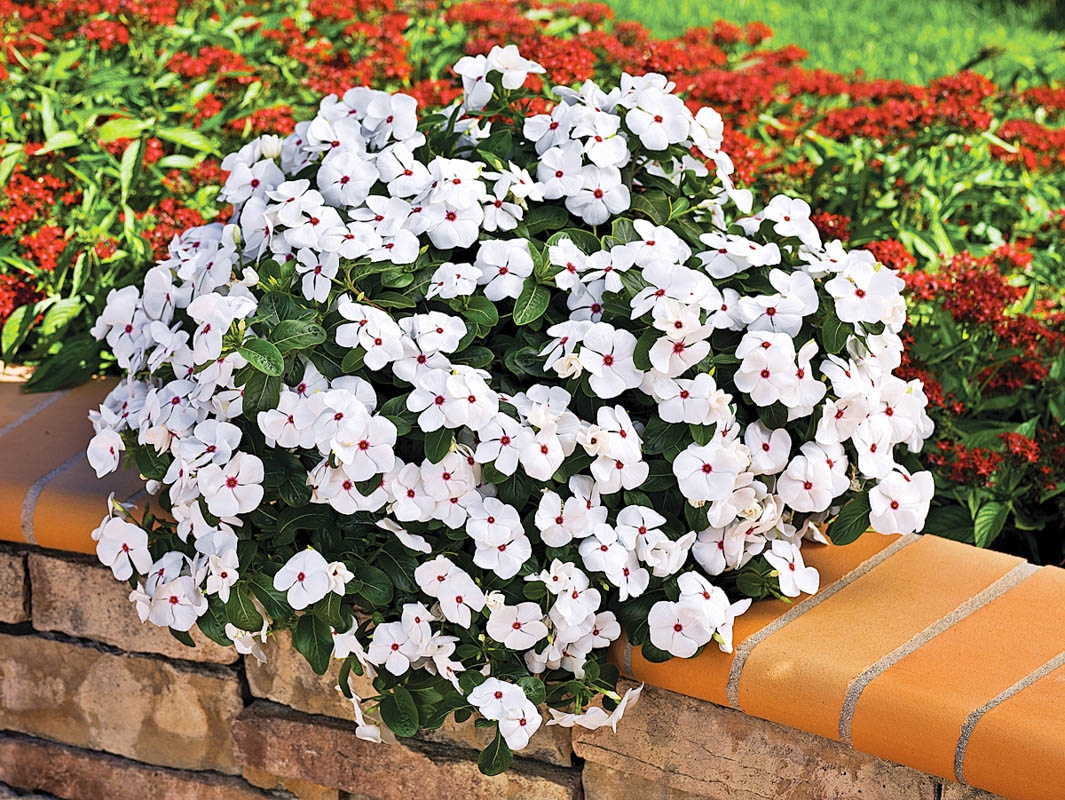 Исключительно привлекательный сорт с белоснежными цветками с ярким красным глазком посередине. Цветение до заморозков. Высота растения всего 20-25 см, но плети, расползаются на 50-60 см. Устойчив к болезням и засухе. Лучший выбор для балконных ящиков.