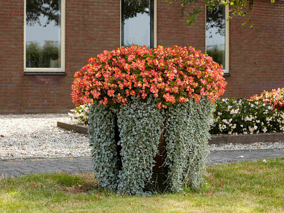 Уникальный ниспадающий габитус с множеством мелких цветков до 4 см в диаметре. Самая ранняя из межвидовых бегоний. Идеальна для подвесных кашпо. Растение наделено сильной энергией роста. Непрекращающееся цветение до поздней осени. Нейтральна к продолжительности светового дня. Неприхотливая и легкая в уходе.