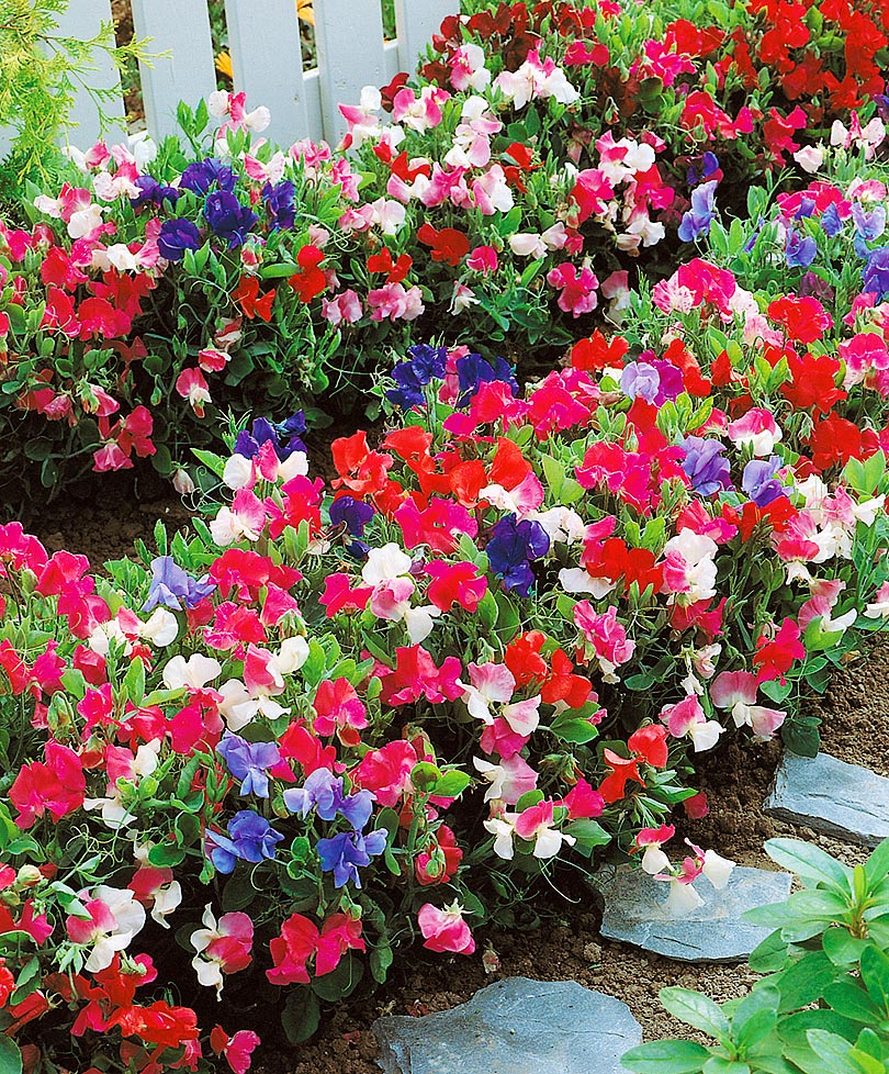 Очень низенький горошек, созданный специально для выращивания в горшках и ящиках. Весёлая пестрота окрасок — малиновых, алых, розовых, лиловых и белых, подчеркнёт летнее настроение. Растения кустовые. Цветки ароматные, некрупные.