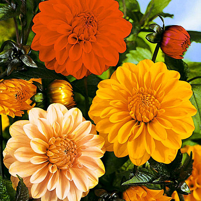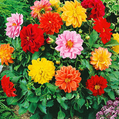 Георгины — любимцы, признанные многими. Однако садовые георгины имеют существенный недостаток: не все цветоводы могут сохранить клубни зимой, они сгнивают или высыхают. Предлагаемые нами георгины лишены этого недостатка. Их выращивают, как обычный летник. В апреле вы сеете семена на рассаду, а когда минует угроза заморозков, высаживаете рассаду в грунт. В июле начинается цветение.