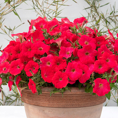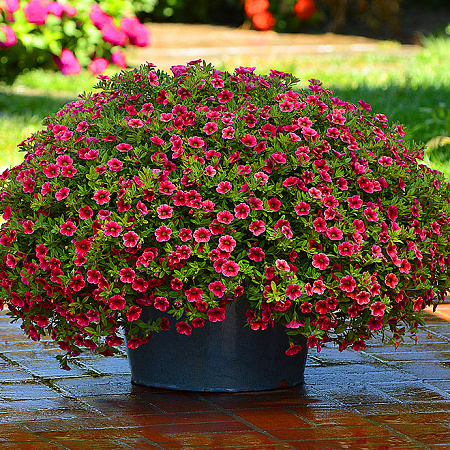 Поразительная расцветка! Вкусный клубничный цвет лепестков с более светлыми краями и темной звездой внутри. Размер цветка – 3 см. Цветение обильное и беспрерывное. Растения ампельные, диаметром до 30 см. Непревзойденный выбор для подвесных кашпо.