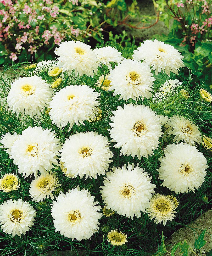 Я в этом году купила такие семена. Красивый цветочек. Когда распускался думала ромашка обычная вырвала один куст, сейчас очень пожалела. Цветок схож на Нивяки. Если семена вызреют собиру, чтобы посеять на будущий год