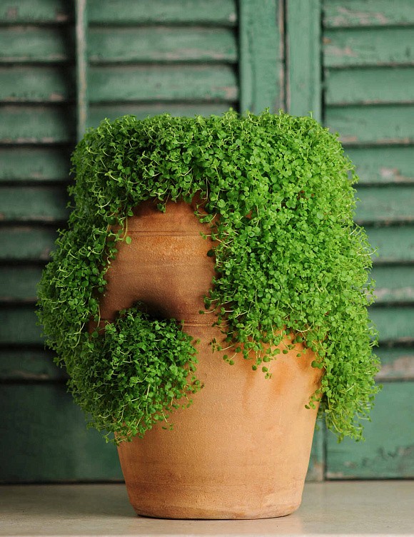 Миниатюрные деликатные листочки источают дивный аромат мяты. Растение прекрасно стелется, можно сажать в горшки (получится эффектный объемный каскад) или использовать как уникальную замену газона: только представьте мятное мягкое покрывало, по которому можно ходить ногами. Не съедобна.