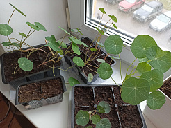УХОД ЗА РАССАДОЙ. Рассаду настурции не пикируют. Как только появятся всходы необходимо снизить температуры до+ 18°C и + 14°C ночью и поставить сеянцы поближе к источнику света, для того, чтобы настурция не вытянулась. Пленку нужно снять. Уход за рассадой заключается в поливах и подкормках. Первая подкормка направлена на усиление корневой системы настурции- 0,5 гр кальциевой селитры разводим в 0,5 л воды и опрыскиваем растения, на следующий день опрыскиваем рассаду стимулятором корнеобразования Циркон 2 капли на 200 мл воды.