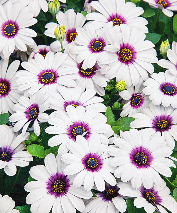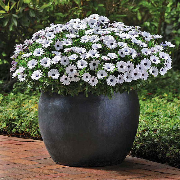 Самая компактная серия остеоспермумов, которая соответствует или даже превосходит любые вегетативные серии. Потрясающая однородность и восхитительные окраски ромашковидных соцветий, диаметром до 7 см. Цветки постоянно обновляются, не выгорают на солнце и не повреждаются сильными дождями. Растения компактные, пышно облиственные, с мощной корневой системой. Цветут до поздней осени. Не требуют прищипывания. Устойчивы к засухе.