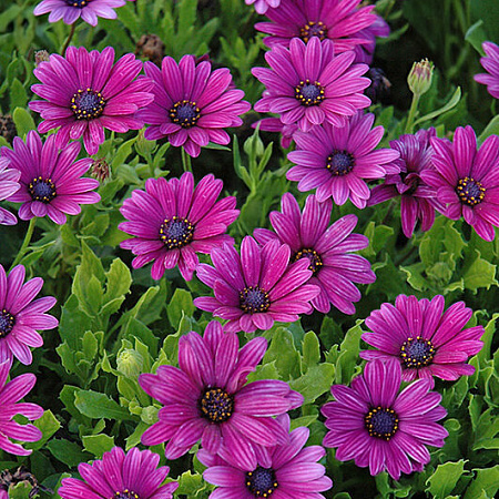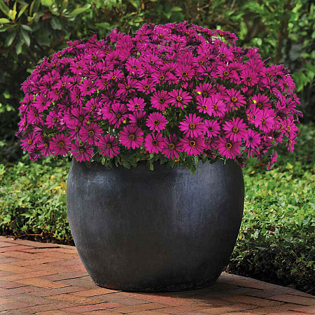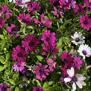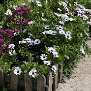 Самая компактная серия остеоспермумов, которая соответствует или даже превосходит любые вегетативные серии. Потрясающая однородность и восхитительные окраски ромашковидных соцветий, диаметром до 7 см. Цветки постоянно обновляются, не выгорают на солнце и не повреждаются сильными дождями. Растения компактные, пышно облиственные, с мощной корневой системой. Цветут до поздней осени. Не требуют прищипывания. Устойчивы к засухе.