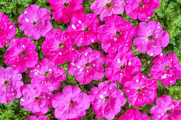 УХОД ЗА ПЕТУНИЕЙ В ГРУНТЕ. Уход за петунией в грунте заключается в регулярных умеренных поливах. В прополках и рыхлении она нуждается до того момента, пока она не заполнит собой сплошным ковром весь отведенный ей участок. Отцветшие цветки нужно своевременно удалять и за сезон несколько раз провести стрижку растений, после каждой стрижки петуния порадует вас вновь обильным кущением и цветением. Подкормки петунии, растущей в грунте в цветниках, нужны раз в 20 -30 дней любым минеральным комплексом для цветочных культур, предпочтительнее кормить по листу. Для петунии в клумбах с ограниченным объемом грунта, например клумба в шине, питание дают раз в 10 -14 дней. Для петуний, высаженных в небольшие кашпо или цветочные горшки, питание дают раз в 7 дней. Объем грунта в цветочном кашпо слишком мал, что бы надолго обеспечить обильное цветение без подкормок. Ампельные петунии любят покушать чаще всех, их кормят раз в 5 дней.