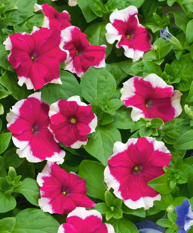 Эта группа занимает лидирующие позиции! Наибольшая гордость крупноцветковой петунии (грандифлора) — это крупные (диаметр 9-13 см!) цветы, простые или махровые с волнистыми краями, окрас от нежных пастельных оттенков до броских цветовых сочетаний. Куст пышный, ветвистый. Отличается ранним, обильным и продолжительным цветением.
