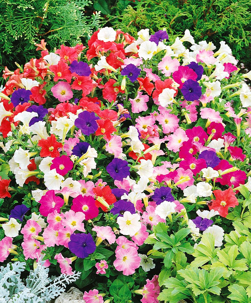 Описание сорта Петуния многоцветковая Цветной Ковёр яркий набор