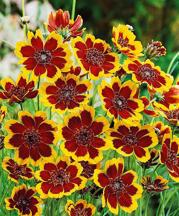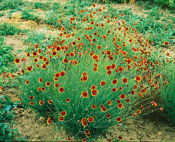 середине. Растение изящное, сильноветвистое с тонкими прочными побегами и ажурными перисто-разделёнными листьями, придающими ярким небольшим соцветиям около 3 см в диаметре особенную красоту и выразительность. Цветение обильное и продолжительное с июня по октябрь.