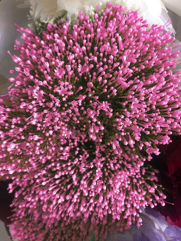 диковинный кустик с крупными, до 15 см, зонтиками крошечных колокольчатых цветочков, источающих тонкий
