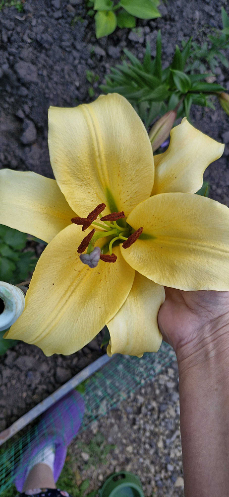 Очень красивая лилия, фото не передаёт красоты цветения. Цветок очень крупный и ярко жёлтый. Первое цветение два цветка.